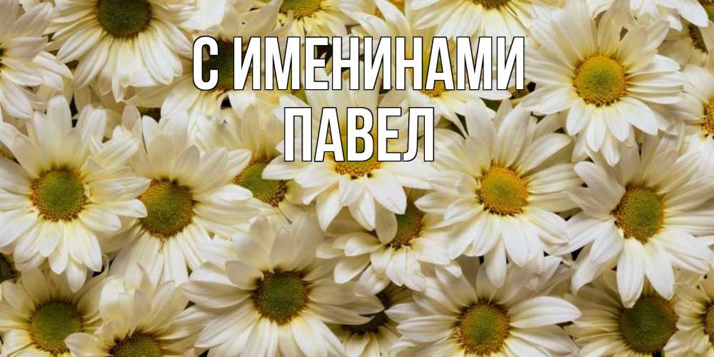 Открытка С именинами Павел. красивые цветы крупные ромашки. крупные ромашки