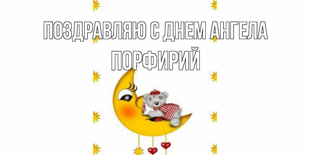 Открытка Поздравляю с днем Ангела Порфирий. Спокойной ночи мишка с сердечками на месяце. месяц, мишка