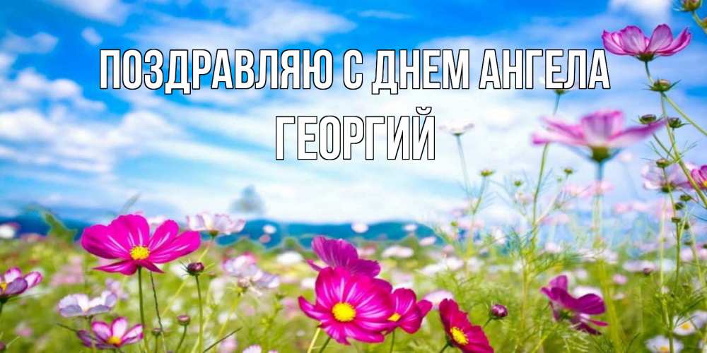 Открытка Поздравляю с днем Ангела Георгий. яркие полевые цветы на фоне голубого неба. поле цветов