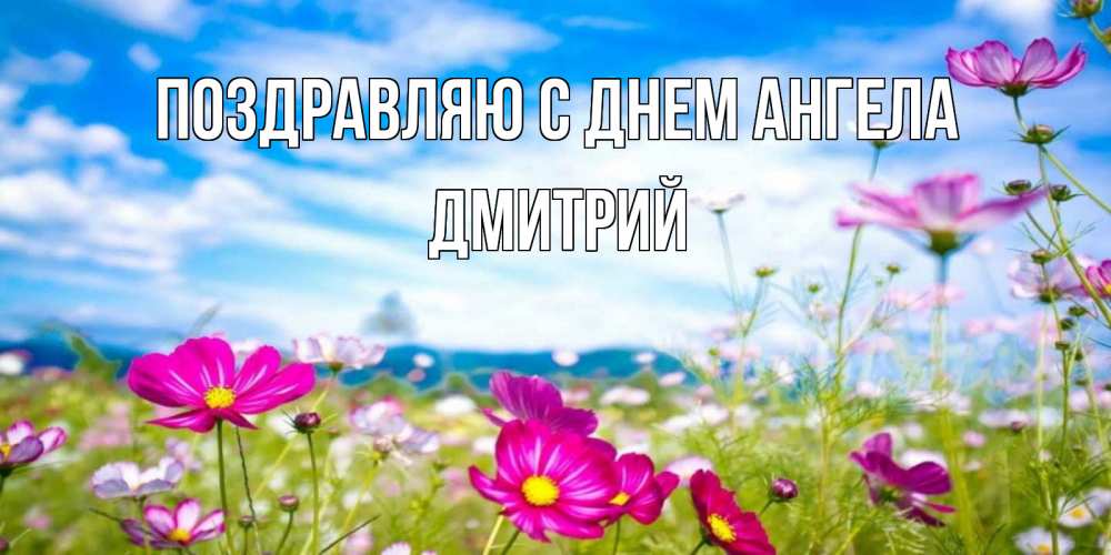 Открытка Поздравляю с днем Ангела Дмитрий. яркие полевые цветы на фоне голубого неба. поле цветов