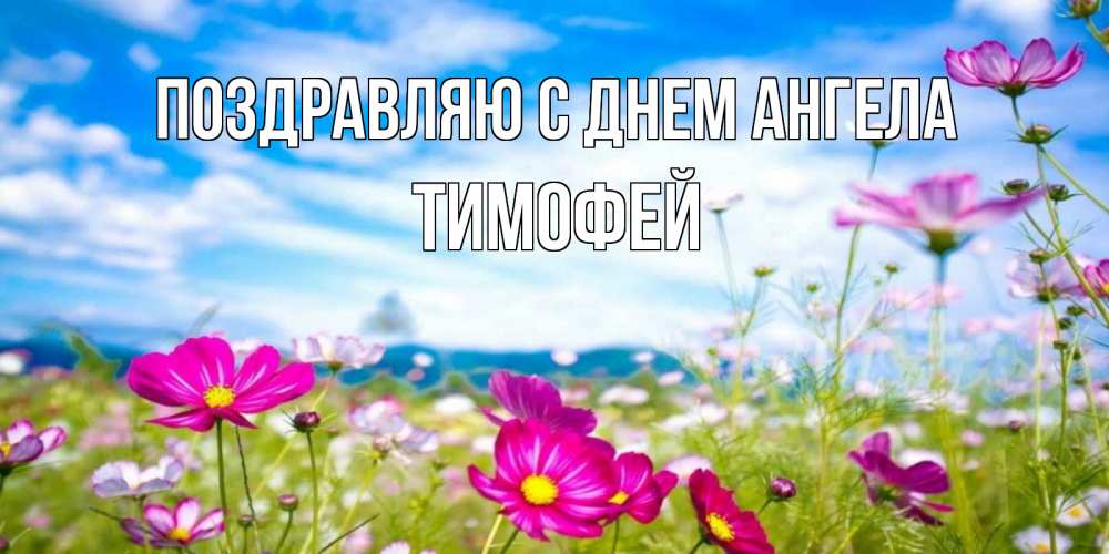 Открытка Поздравляю с днем Ангела Тимофей. яркие полевые цветы на фоне голубого неба. поле цветов