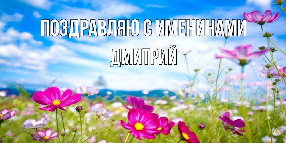 Открытка Поздравляю с именинами Дмитрий. яркие полевые цветы на фоне голубого неба. поле цветов