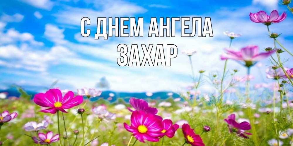 Открытка С днем Ангела Захар. яркие полевые цветы на фоне голубого неба. поле цветов
