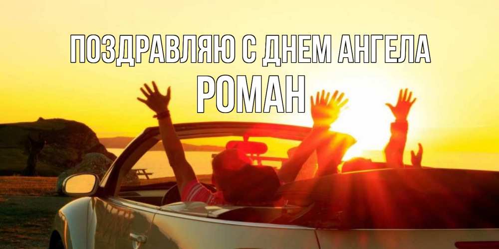 Открытка Поздравляю с днем Ангела Роман. Машина со счастливыми людьми. фото счастливые люди в хорошем настроении