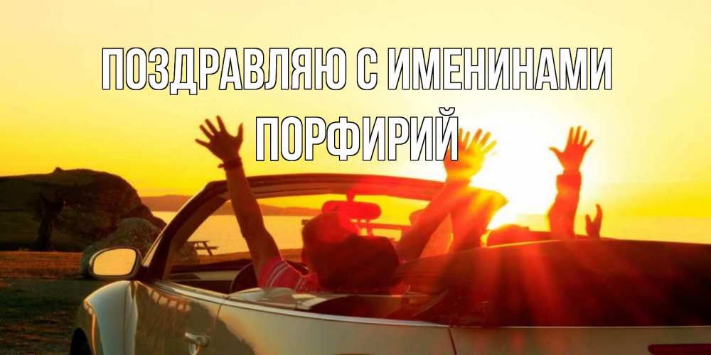 Открытка Поздравляю с именинами Порфирий. Машина со счастливыми людьми. фото счастливые люди в хорошем настроении