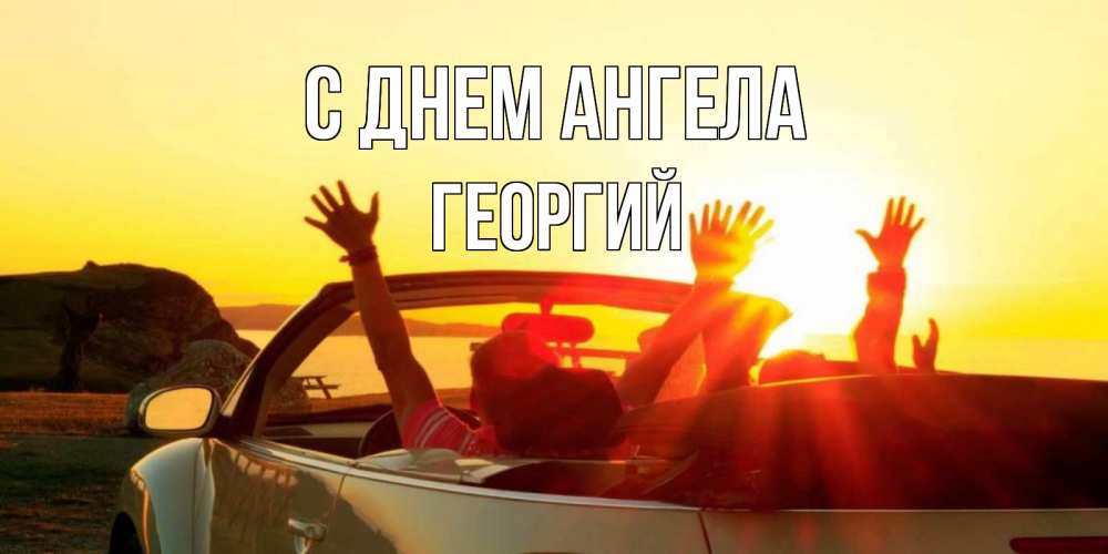 Открытка С днем Ангела Георгий. Машина со счастливыми людьми. фото счастливые люди в хорошем настроении