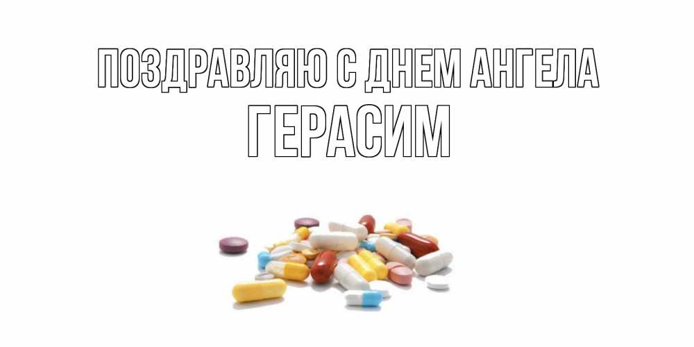 Открытка Поздравляю с днем Ангела Герасим. открытка с пожеланиями не болей с таблетками. пожелания скорейшего выздоровления с именами