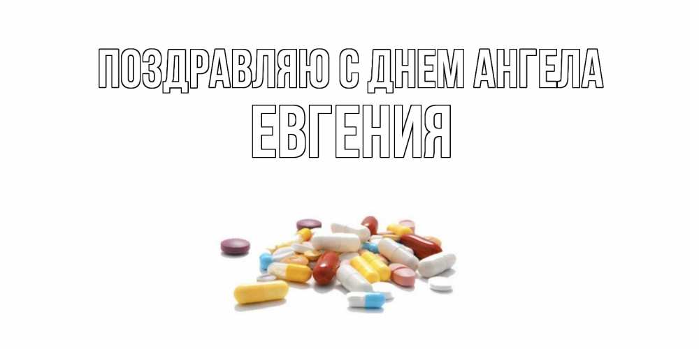 Открытка Поздравляю с днем Ангела Евгения. открытка с пожеланиями не болей с таблетками. пожелания скорейшего выздоровления с именами
