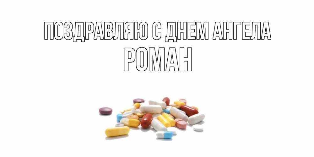 Открытка Поздравляю с днем Ангела Роман. открытка с пожеланиями не болей с таблетками. пожелания скорейшего выздоровления с именами
