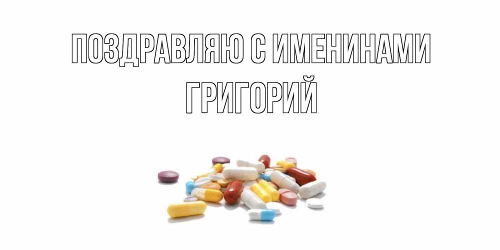 Открытка Поздравляю с именинами Григорий. открытка с пожеланиями не болей с таблетками. пожелания скорейшего выздоровления с именами