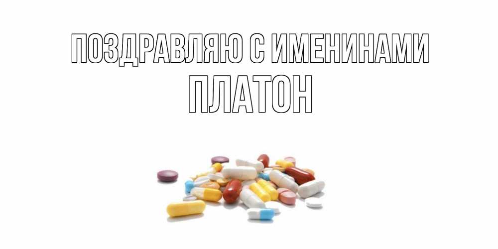 Открытка Поздравляю с именинами Платон. открытка с пожеланиями не болей с таблетками. пожелания скорейшего выздоровления с именами