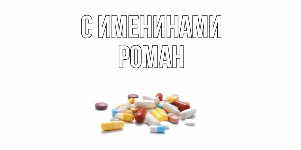 Открытка С именинами Роман. открытка с пожеланиями не болей с таблетками. пожелания скорейшего выздоровления с именами