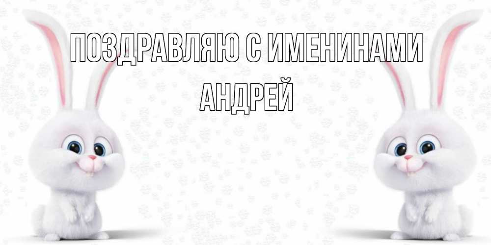 Открытка Поздравляю с именинами Андрей. зайчики с ушками желают не болеть. не болей с зайцем