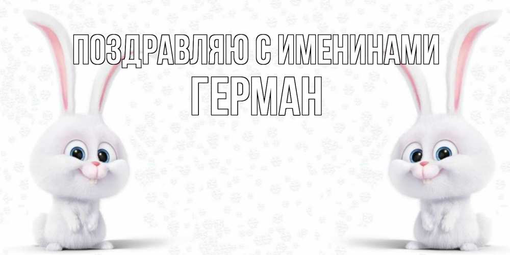 Открытка Поздравляю с именинами Герман. зайчики с ушками желают не болеть. не болей с зайцем