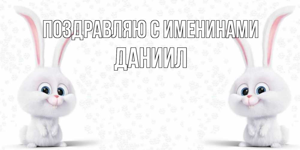 Открытка Поздравляю с именинами Даниил. зайчики с ушками желают не болеть. не болей с зайцем