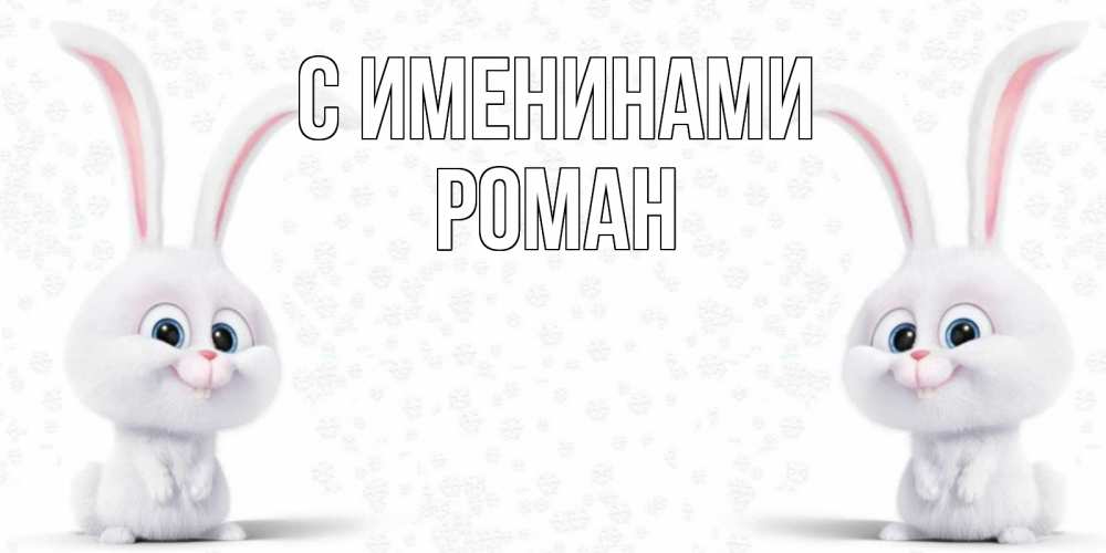Открытка С именинами Роман. зайчики с ушками желают не болеть. не болей с зайцем