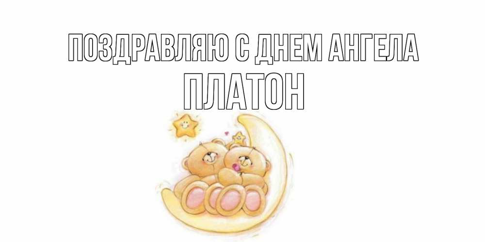 Открытка Поздравляю с днем Ангела Платон. мишки на месяце со звездой. мишки, месяц