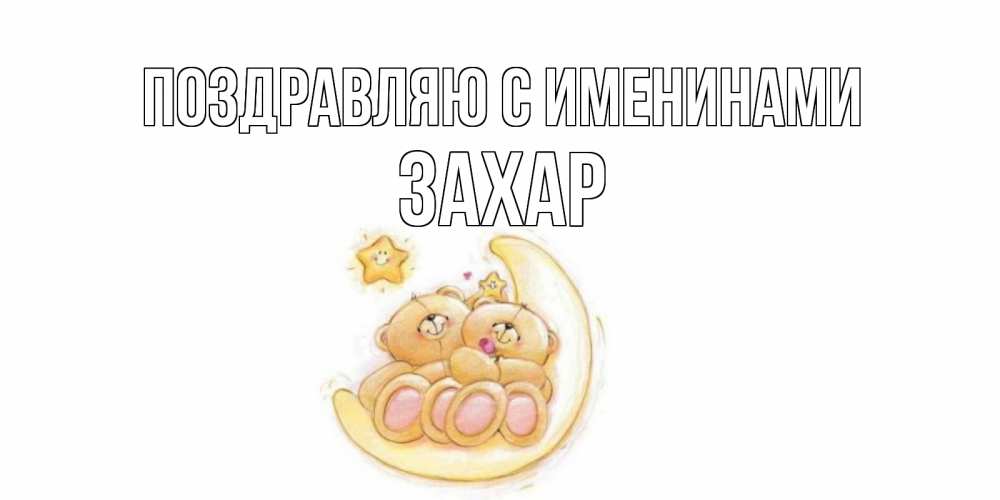 Открытка Поздравляю с именинами Захар. мишки на месяце со звездой. мишки, месяц