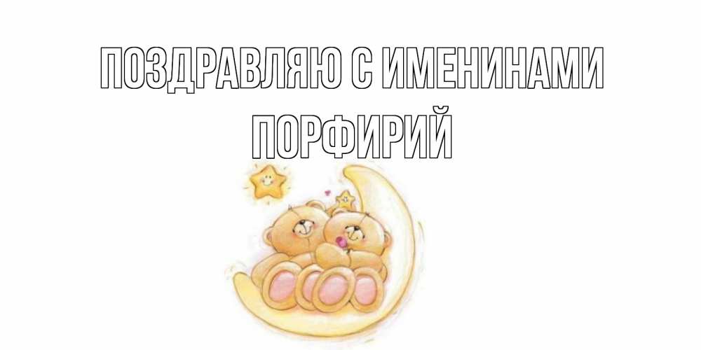 Открытка Поздравляю с именинами Порфирий. мишки на месяце со звездой. мишки, месяц