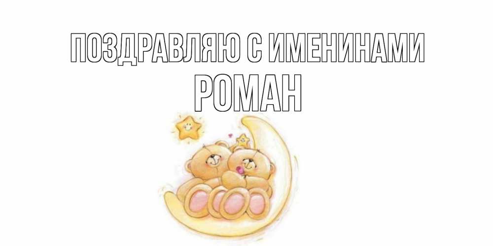 Открытка Поздравляю с именинами Роман. мишки на месяце со звездой. мишки, месяц