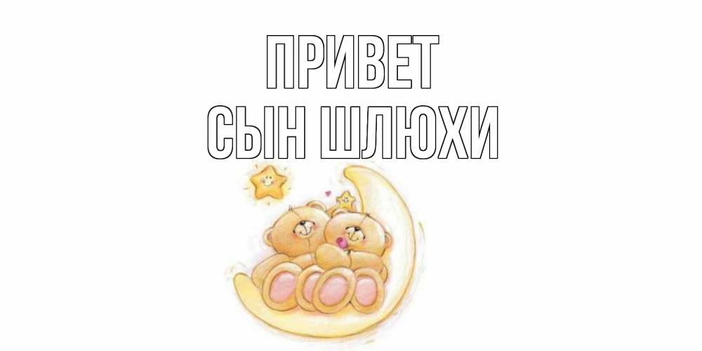 Открытка Привет Сын шлюхи. мишки на месяце со звездой. мишки, месяц