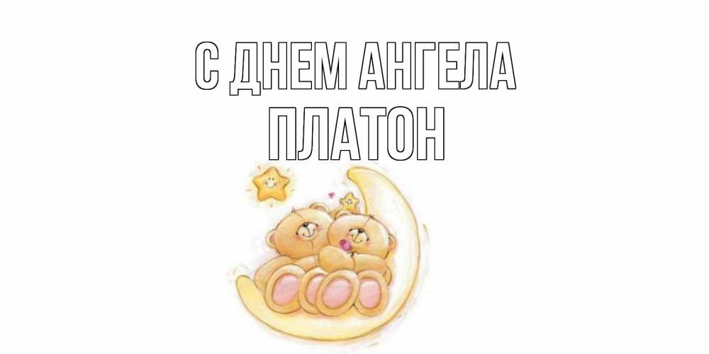 Открытка С днем Ангела Платон. мишки на месяце со звездой. мишки, месяц