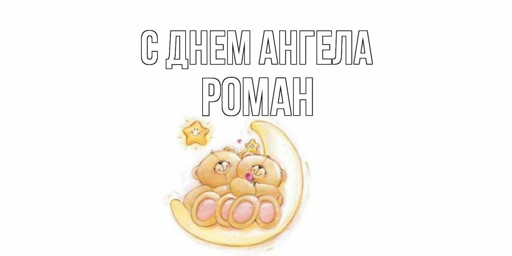 Открытка С днем Ангела Роман. мишки на месяце со звездой. мишки, месяц
