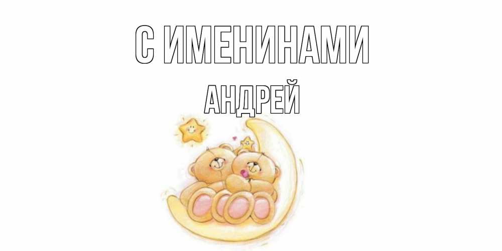 Открытка С именинами Андрей. мишки на месяце со звездой. мишки, месяц