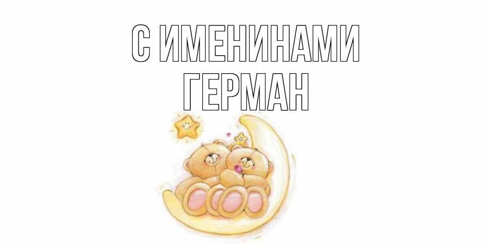 Открытка С именинами Герман. мишки на месяце со звездой. мишки, месяц