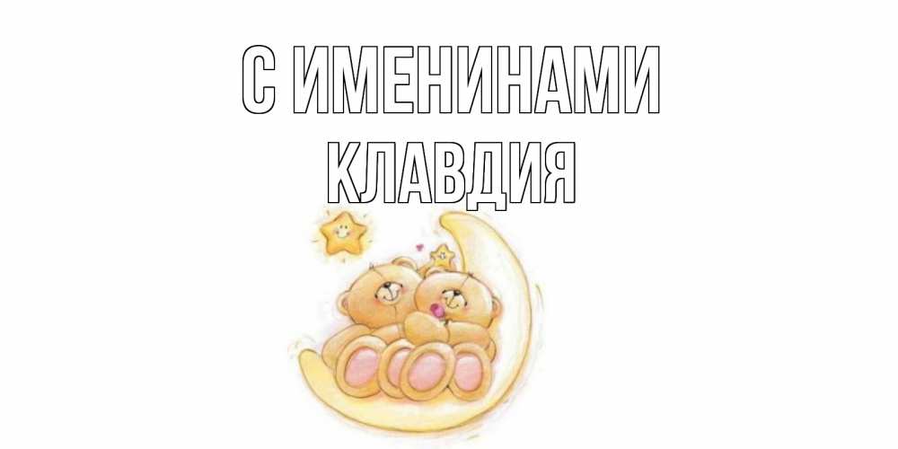 Открытка С именинами Клавдия. мишки на месяце со звездой. мишки, месяц