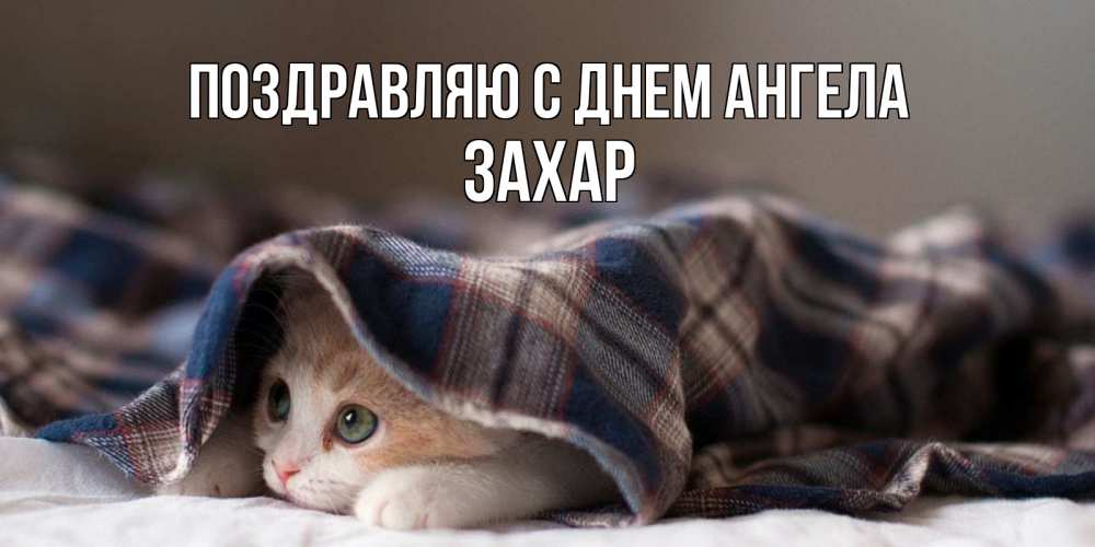 Открытка Поздравляю с днем Ангела Захар. котик под пледом желает скорейшего выздоровления. не болейте с котиком