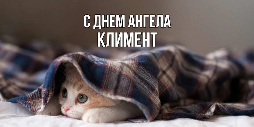 Открытка С днем Ангела Климент. котик под пледом желает скорейшего выздоровления. не болейте с котиком