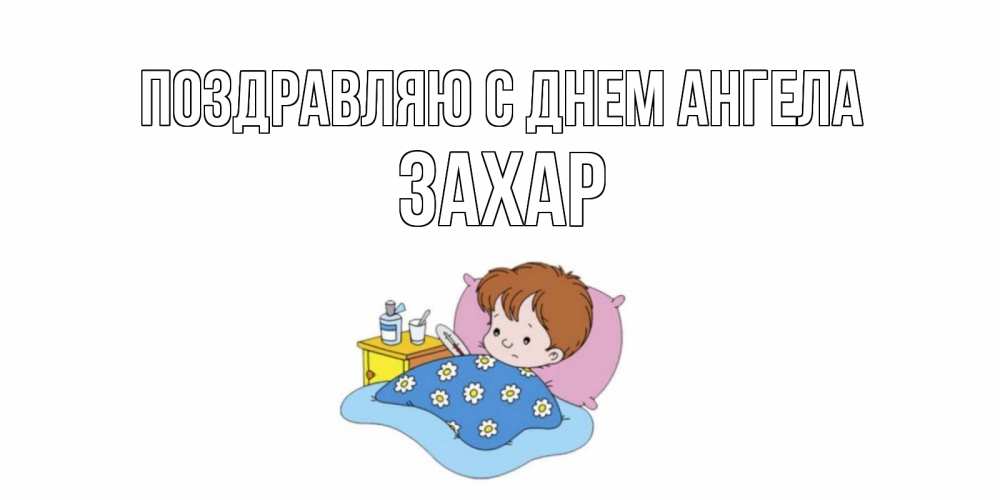 Открытка Поздравляю с днем Ангела Захар. мальчик с градусником болеет. не болейте дети