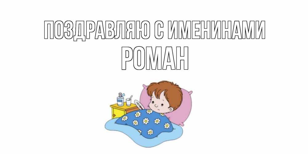 Открытка Поздравляю с именинами Роман. мальчик с градусником болеет. не болейте дети