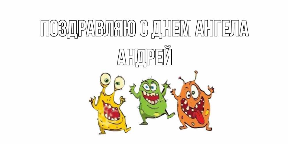 Открытка Поздравляю с днем Ангела Андрей. вирусы желают выздоровления. бациллы пляшут