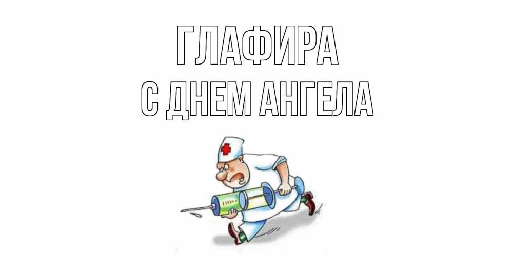 Открытка Глафира С днем ангела. медсестра с большим шприцем желает не болеть. прикольные открытки не болей