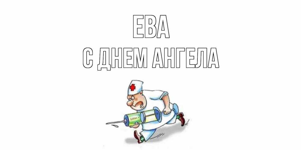 Открытка Ева С днем ангела. медсестра с большим шприцем желает не болеть. прикольные открытки не болей