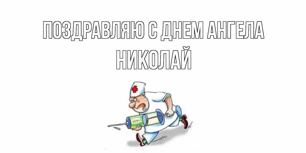 Открытка Поздравляю с днем Ангела Николай. медсестра с большим шприцем желает не болеть. прикольные открытки не болей
