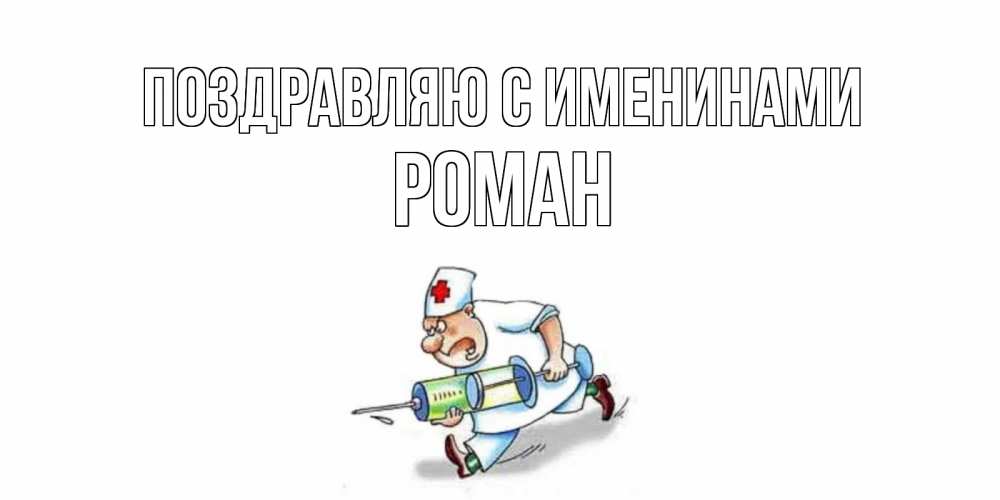Открытка Поздравляю с именинами Роман. медсестра с большим шприцем желает не болеть. прикольные открытки не болей