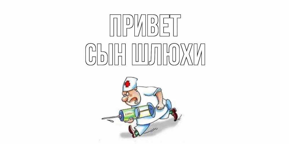 Открытка Привет Сын шлюхи. медсестра с большим шприцем желает не болеть. прикольные открытки не болей