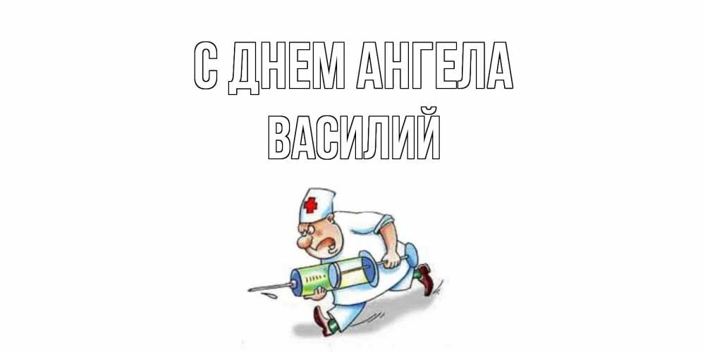 Открытка С днем Ангела Василий. медсестра с большим шприцем желает не болеть. прикольные открытки не болей