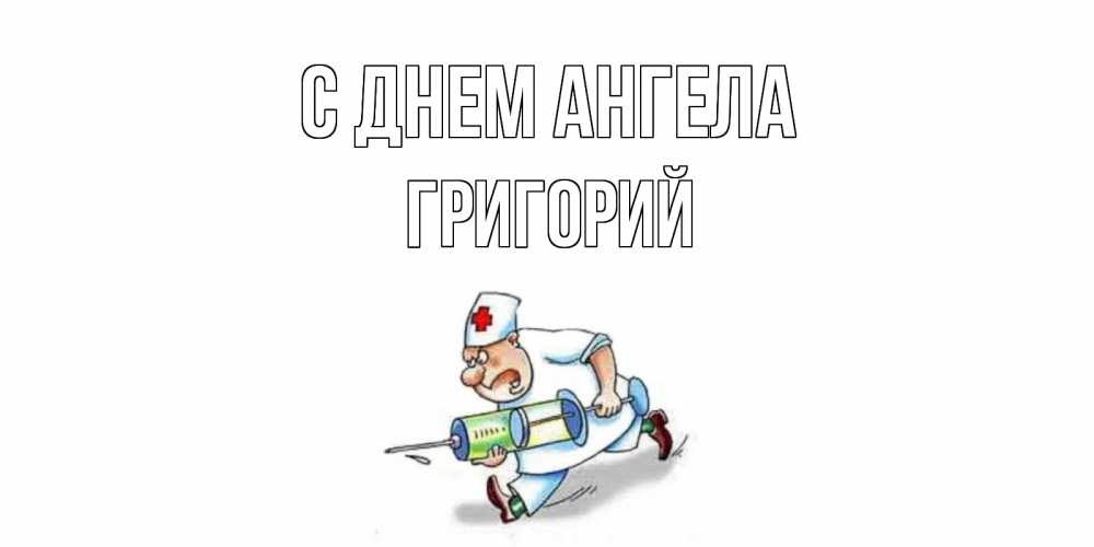 Открытка С днем Ангела Григорий. медсестра с большим шприцем желает не болеть. прикольные открытки не болей