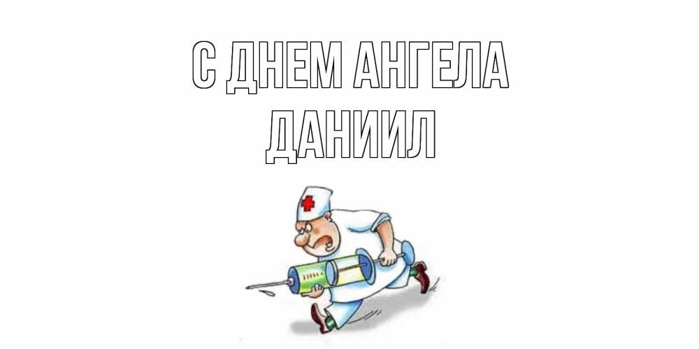 Открытка С днем Ангела Даниил. медсестра с большим шприцем желает не болеть. прикольные открытки не болей