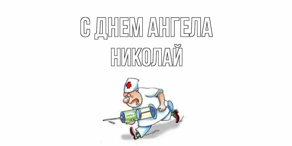 Открытка С днем Ангела Николай. медсестра с большим шприцем желает не болеть. прикольные открытки не болей