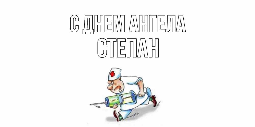 Открытка С днем Ангела Степан. медсестра с большим шприцем желает не болеть. прикольные открытки не болей