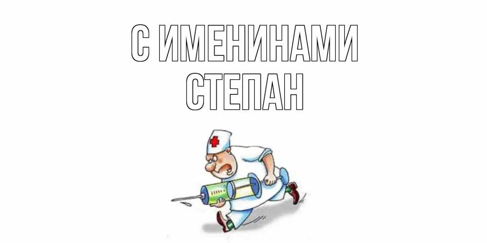 Открытка С именинами Степан. медсестра с большим шприцем желает не болеть. прикольные открытки не болей