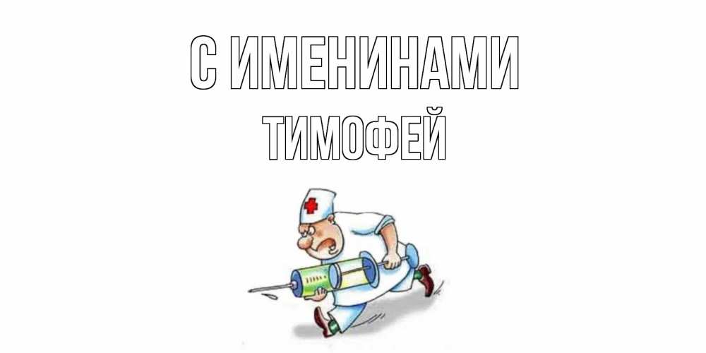 Открытка С именинами Тимофей. медсестра с большим шприцем желает не болеть. прикольные открытки не болей