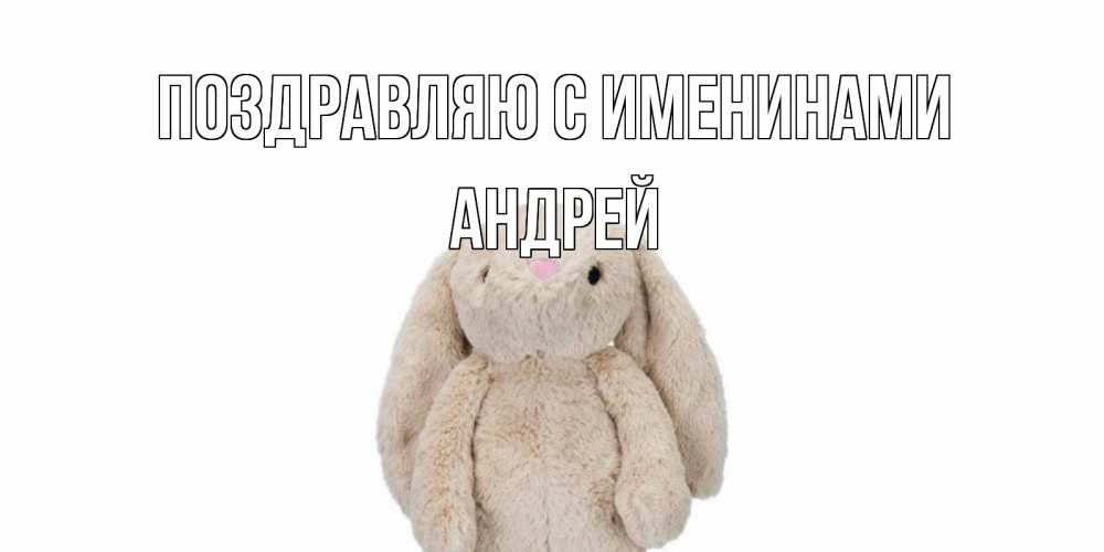 Открытка Поздравляю с именинами Андрей. заяц вислоухий желает выздоровления. не болей