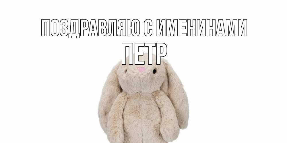 Открытка Поздравляю с именинами Петр. заяц вислоухий желает выздоровления. не болей