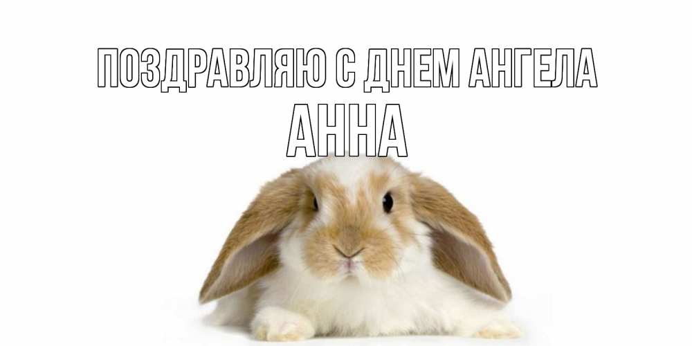Открытка Поздравляю с днем Ангела Анна. вислоухий кролик желает не болеть. вислоухий кролик белого и коричневого цвета